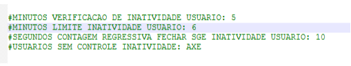 No exemplo acima, os usuários AXE, SOFTDATA e MASTER não terão o controle de inatividade.